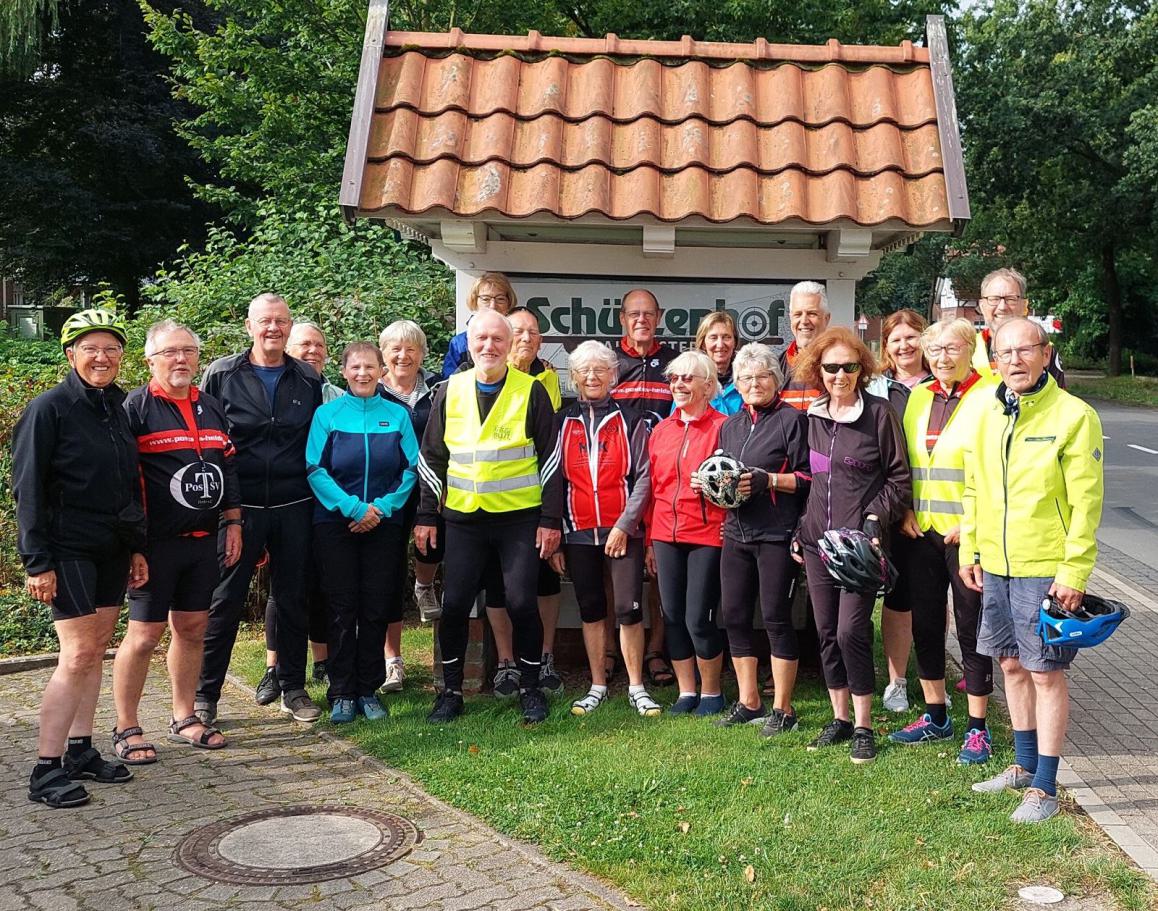 Nach drei erfolgreichen Mehrtagestouren ging es für die Radwanderinnen und Radwanderer des Postsportvereins dieses Jahr in die Nordheide. Hierfür wurden im Schützenhof Ahlerstedt (südwestlich von Buxtehude gelegen) für die 20 Teilnehmer Zimmer angemietet. Fünf der Teilnehmer sind am Mittwoch direkt von Heide auf ihren Fahrrädern gestartet, damit sie nach Überfahrt über die Fähre Glückstadt – Wischhafen und einer Zwischenübernachtung in Stade-Bützfleth rechtzeitig am Donnerstagmittag zur ersten gemeinsamen Tour vor Ort sind. Die anderen Teilnehmer haben sich am Donnerstagmorgen mit ihren PKW auf nach Ahlerstedt gemacht. Die Fahrräder wurden auf Trägern auf den Anhängerkupplungen sowie auf dem vereinseigenen Anhänger transportiert, der dafür extra mit Fahrradhalterungen ausgerüstet wurde. Nach Abladen der Fahrräder wurde die erste Tour gestartet, die nach Sauensiek führte. Hier konnten die Teilnehmer den Aussichtsturm auf dem Litberg besteigen, von dem man einen herrlichen Blick über die Umgebung hat. Der Turm wurde 2008 von der Gemeinde Sauensiek in Erinnerung an die genialen Vermessungsleistungen von Carl Friedrich Gauß erbaut, der an gleicher Stelle 1821 einen Vermessungsturm errichten ließ, um seine Ziele in Hamburg-Altona und Hohenhorn, am Wilseder Berg, in Elmhorst sowie in Zeven anpeilen zu können.